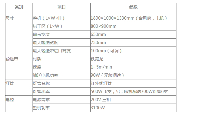 1、高紅外干燥機(jī)采用高紅外燈管加熱,室溫—300℃任意設(shè)定,設(shè)有熱風(fēng)循環(huán)系統(tǒng)、自然風(fēng)冷卻系統(tǒng)。