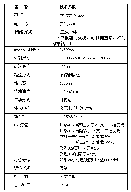 紫外線干燥機(jī)配置:(雙燈)